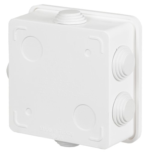 Puszka z tworzywa ABS, z przetłoczeniami, wykonana z bardzo wytrzymałego materiału, do montażu natynkowego.