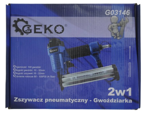 Pneumatyczny zszywacz / gwoździarka 2w1 przeznaczony do wykonywania różnego rodzaju prac tapicerskich i stolarskich. Zszywaczy wykonany z wysokiej jakości materiałów, ergonomiczna rękojeść powlekana gumą zapewnia komfort i pewny chwyt narzędzia podczas pracy. Narzędzie przystosowane to standardowych zszywek i gwoździ tapicerskich (gwoździe: 10-32mm, zszywki: 16-32mm). Zszywacz wyposażony został w magazynie zdolny pomieścić 100 szt. gwoździ bądź zszywek tapicerskich.