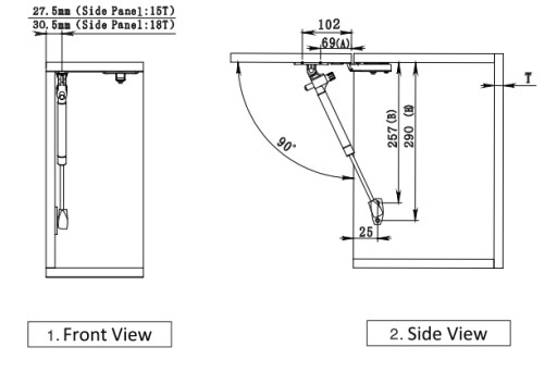 2xPodnośnik gazowy 100N z systemem cichego domykania