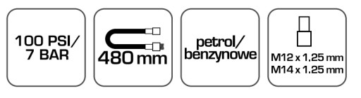 - elastyczny gumowy wąż 480 mm z szybkozłączem pozwala na dotarcie nawet do trudno dostępnych miejsc