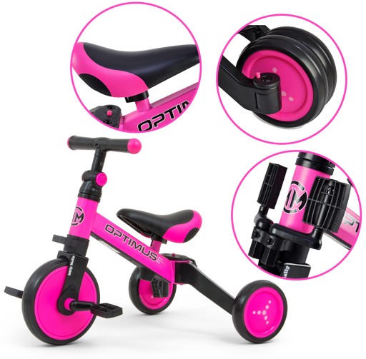 Optimus został zaprojektowany, aby stać się jednym z najlepszych wyborów na pierwszy pojazd twojego dziecka. Dzięki stabilnej trójkołowej konstrukcji zapewnia dziecku odpowiedni poziom bezpieczeństwa i ułatwia zdobywanie nowych umiejętności. Kiedy dziecko ma już opanowane podstawy jazdy, możemy dodać pedały lub zmienić go w klasyczny rowerek biegowy.