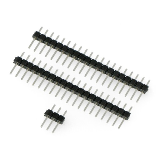 Zestaw męskich złącz goldpin o rastrze wyprowadzeń 2,54 mm. Zestaw składa się z dwóch listew 1x20 oraz jednej 1x3 zgodnych ze złączami GPIO w Raspberry Pi Pico. Piny po wlutowaniu umożliwiają bezpośrednie podłączenie do maliny akcesoriów za pomocą standardowych przewodów połączeniowych.