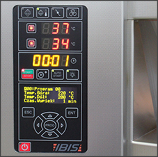 Panel sterowniczy jest intuicyjny i wszechstronny a jego przyjazny dla użytkownika interfejs umożliwia wygodną obsługę oraz programowanie i nadzorowanie pracy pieca. W panelu istnieje możliwość zapisania do 20 programów, a każdy z nich może posiadać do 3 faz temperatur (funkcja trójetapowego wypieku). Ewentualne błędne zadanie parametrów oraz zakłócenia są sygnalizowane przez sygnały dźwiękowe oraz kody błędów. Zakres regulacji temperatury pieca wynosi 0 – 270 st. C.