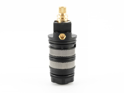 Po zamontowaniu głowicy termostatycznej zalecanym jest wykonanie kalibracji. Działanie to ma na celu ustawienie temperatury w taki sposób aby faktyczna temperatura wody była zgodna z podziałką, która jest widoczna na korpusie urządzenia. Po włożeniu głowicy w gniazdo i zamocowaniu jej śrubą kontrującą należy regulować, zmniejszając lub zwiększając temperaturę do momentu uzyskania 38ºC. Następnie wystarczy założyć pokrętło tak aby znacznik pokrętła wskazywał 38ºC na podziałce temperatury.