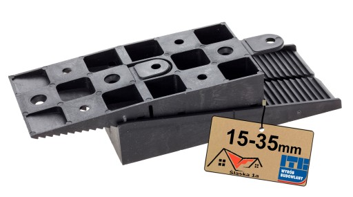 Regulacja wysokości odbywa się poprzez przesuwanie ząbkowanego klina po ząbkowanej podstawie.
