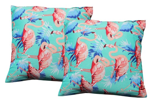 💛 2 turkusowe poduszki 34x34cm, wzór z flamingami