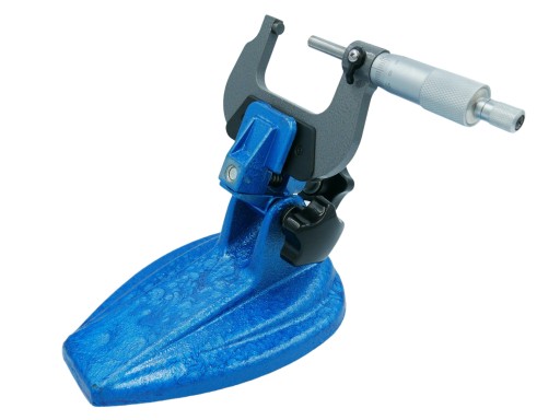 Statyw ułatwia pomiar mikrometrem oraz innym przyrządem ręcznym, np. transametrem. Okładziny z Porowata guma na szczękach zapobiega zarysowaniu powierzchni kabłąka mikrometru oraz zapewnie pewne mocowanie. Podstawa wykonana z żeliwa. Pozwala na stabilne umieszczenie mikrometru w uchwycie, co ułatwia przeprowadzenie pomiarów. Pasuje do większości mikrometrów. Posiada funkcję pochylenia kąta mikrometru.