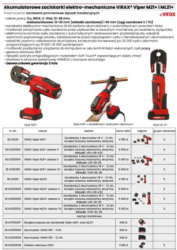 napęd, 2 akumulator 18V/2,0Ah, szczęka bazowa, ładowarka, skrzynka VIRABOX