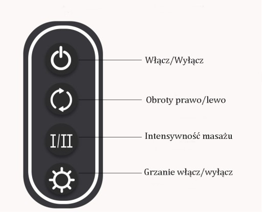 - pobudza i stymuluje mięśnie pleców oraz stawy kręgosłupa, dzięki ostukującym ruchom wałków do masażu.