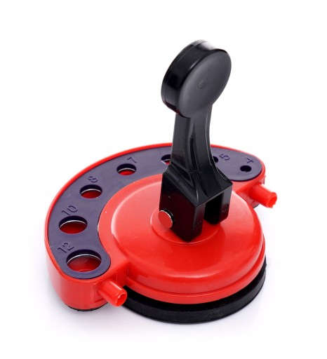 Prowadnica wykonana z wytrzymałego tworzywa ABS obsługuje wiertła w rozmiarze 4-12 mm. Posiada mocną przyssawkę o średnicy aż 6 cm i 7 otworów prowadzących o średnicach: 4, 5, 6, 7, 8, 10, 12 mm.