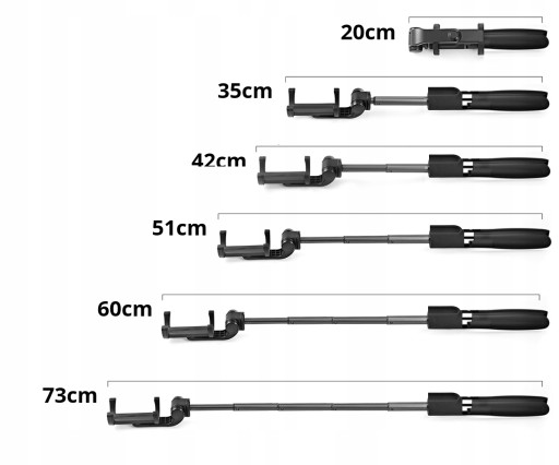 - Długość całkowita: 73 cm (rozłożony jako statyw, lub jako kijek selfie)