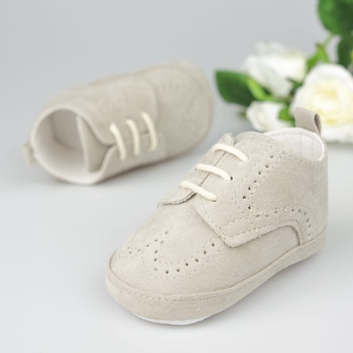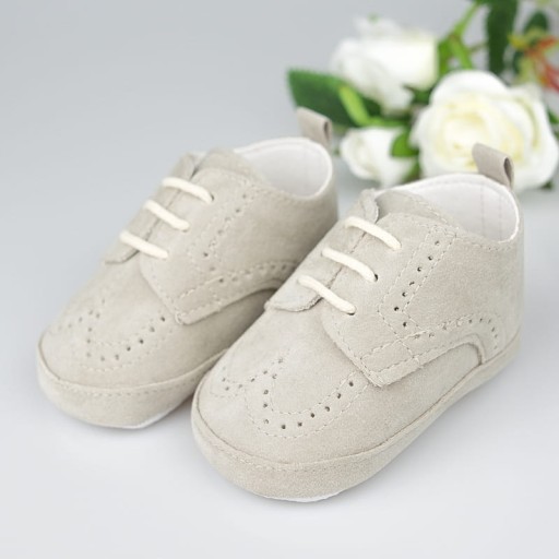 Крестильные туфли замшевые - бежевые (Размер: 11)
