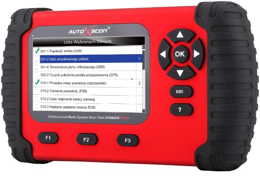 - Diagnoskop RS820 PRO w pancernej gumowej obudowie z 4,3 calowym kolorowym ekranem.