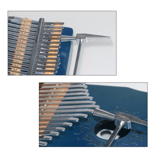 Dostrajanie instrumentu odbywa się poprzez uderzanie dedykowanym młoteczkiem w górny lub dolny brzeg klawisza (blaszki) w celu jego przesunięcia: aby uzyskać dźwięk bardziej basowy należy uderzyć w klawisz od góry, analogicznie aby uzyskać dźwięk wysoki należy uderzyć w klawisz od dołu.