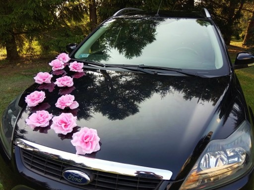 Kwiaty można w dowolny sposób umieścić na masce samochodu, tworząc różnorodne dekoracje.