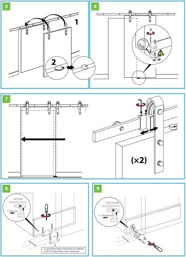 Prowadnica górna powinna być mocowana na ścianie przystosowanej do utrzymania wagi do 250 kg.