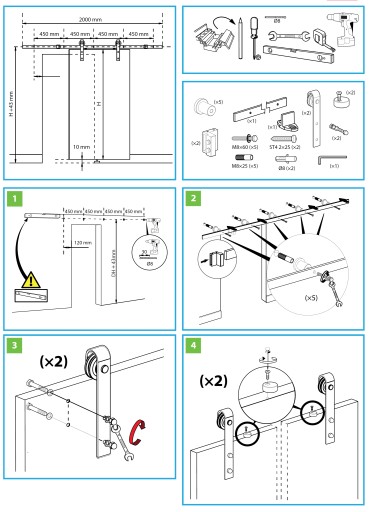 - Łożyskowe rolki umożliwiają ciche i łatwe otwieranie, zamykanie drzwi.