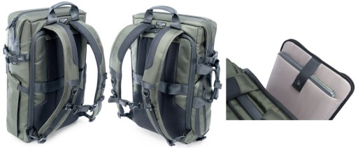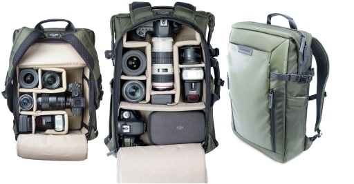 Mieści lustrzankę lub bezlusterkowca z podłączonym teleobiektywem, 3 zapasowe obiektywy, lampę błyskową, 13-calowego laptopa oraz całą masę akcesoriów i rzeczy osobistych, dzięki dodatkowej, pojemnej komorze i mniejszym kieszonkom. Umożliwia także transport statywu. Doskonały do pracy przy reportażu, podróży służbowych i prywatnych a także na plenery.