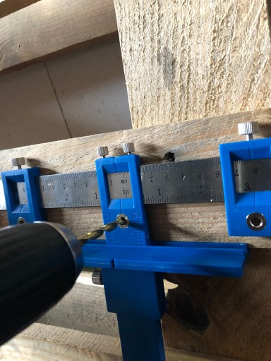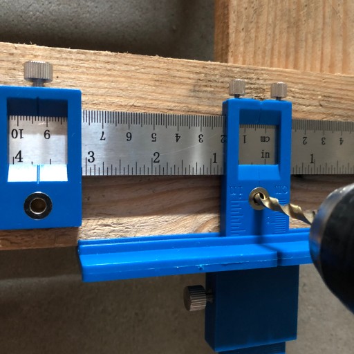 - Wysokość, na której mają znajdować się otwory (0 do 25cm) wyregulujesz przy pomocy blokady, znajdującej się na niebieskiej linijce. Ustaw odpowiadającą Ci wysokość, a następnie dokręć śrubę blokującą.