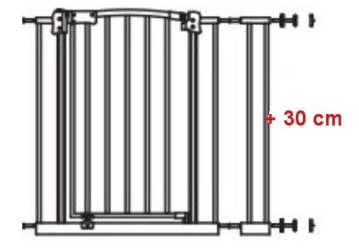 Wysokość bramki wynosi 75-79 cm - zapewnia to bezpieczeństwo wszystkim dzieciom. Minimalna szerokość montażu to 73-82 cm, maksymalna zaś to aż 103-112 cm. W zestawie wraz z bramką znajduje się dodatkowe rozszerzenie o szerokości 30 cm.