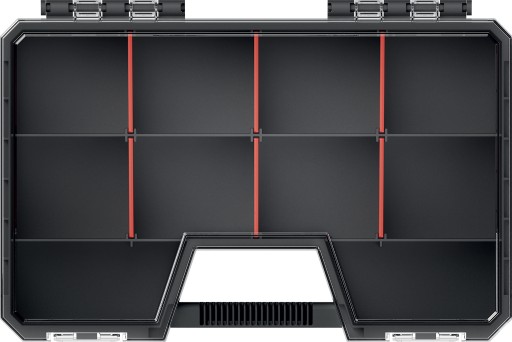 Organizer posiada demontowalne przegrody ułatwiające organizację elementów drobnicowych.