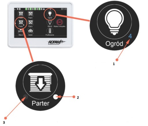 - funkcji automatyki: sterowanie oświetleniem, roletami, automatyką bramową itp.