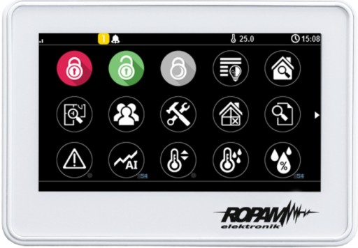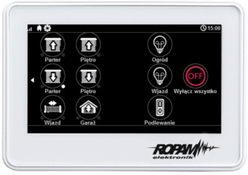 ⏩ Panel dotykowy Ropam TPR-4W-P posiada ekran pojemnościowy o przekątnej 4,3”, obsługa tego urządzenia jest bardzo zbliżona do bardzo dobrze znanym nam smartfonów czy tabletów. Przeznaczony jest do obsługi systemu alarmowego i automatyki, zbudowanego w oparciu o centrale serii OptimaGSM i NeoGSM-IP. Umożliwia realizację:
