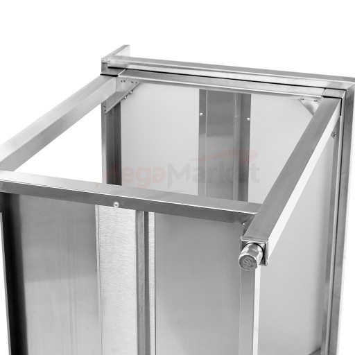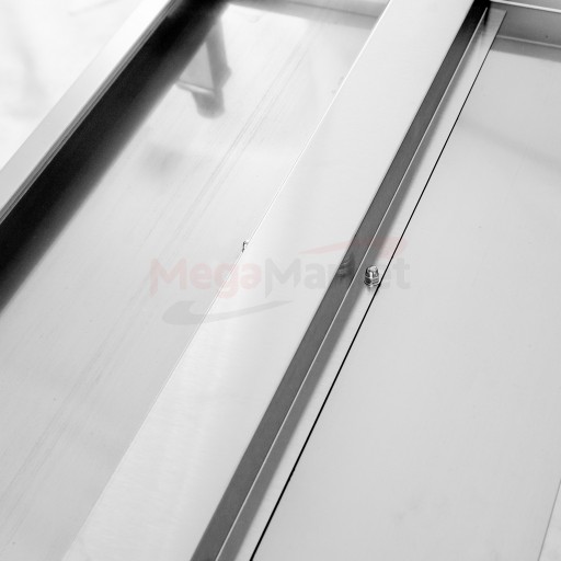 Pod blatem została umieszczona półka ze stali nierdzewnej jako dodatkowe miejsce do przechowywania np. naczyń kuchennych. Zachowasz tym samym porządek na stanowisku pracy.