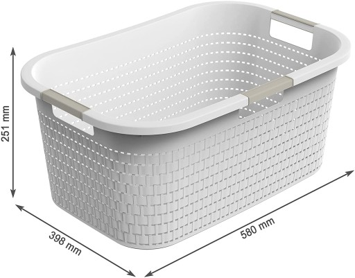 Dzięki koszowi na pranie Country o pojemności 40 litrów od Rotho pranie jest znowu przyjemne. Jest wystarczająco duży, aby można było prać pranie w pralce, a wysokiej jakości materiał oznacza, że możesz do końca go załadować. Kosz na pranie trzyma się nawet wtedy, gdy jest całkowicie załadowany mokrym praniem. Trzy miękkie i wygodne uchwyty oraz ergonomiczny kształt kosza pozwalają na wygodne przenoszenie go na różne sposoby, na przykład jedną ręką. Kosz na pranie Country zbudowano z wysokiej jakości materiału. Ze wszystkich czterech stron kosza na pranie zastosowano misterną strukturę rattanową. Te otwory wentylacyjne zapewniają cyrkulację wewnątrz pojemnika na pranie i przeciwdziałają nieprzyjemnym zapachom po długim okresie mokrego prania. Wysokiej jakości tworzywo sztuczne i dobre wykonanie zapewniają długą żywotność.