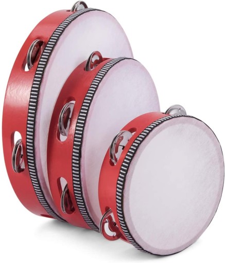 Tamburyno drewniane z membraną - 15 cm - 4 dzwonki