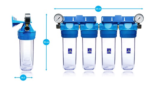 Kompletny 4-stopniowy filtr wstępny do montażu na wejściu instalacji do domu.