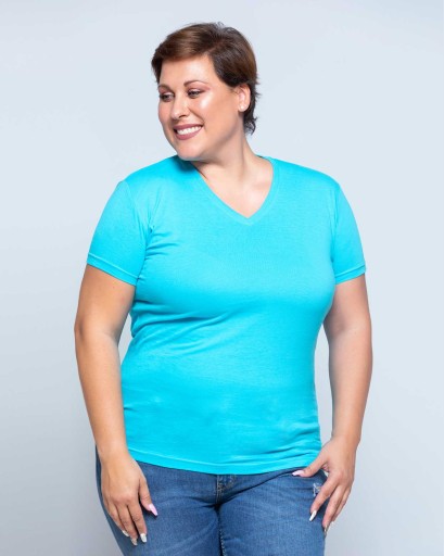 DAMSKA KOSZULKA Z DEKOLTEM V/ W SEREK BEZ NADRUKU