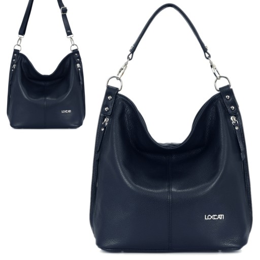 Włoska granatowa duża torebka skórzana LOCCATI