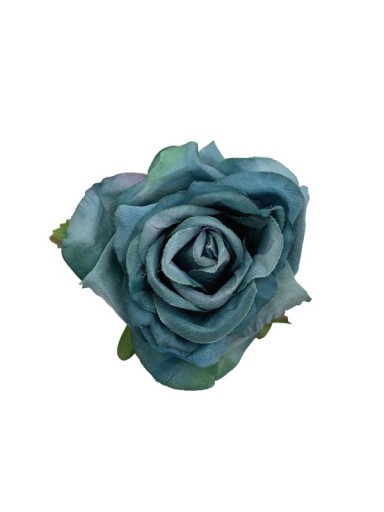 Róża kwiat wyrobowy o średnicy 9 cm i wysokości 7 cm w pięknym niebieskim kolorze z delikatnie jaśniejszym środkiem i nieregularnym cieniowaniem. Główka wykonana została bardzo precyzyjnie z wysokiej jakości materiałów z wieloma warstwami płatków w lekko satynowym wykończeniu, co w połączeniu daje niesamowicie naturalny efekt. Doskonale sprawdzi się w klasycznych kompozycjach kwiatowych, a po nabiciu na drut florystyczny i połączeniu z zielonymi akcentami będzie przepiękną ozdobą w wazonie. Świetnie sprawdzi się również w standardowych flowerboxach, jednak przez wzgląd na swój ciekawy kolor nada im nietuzinkowego charakteru.