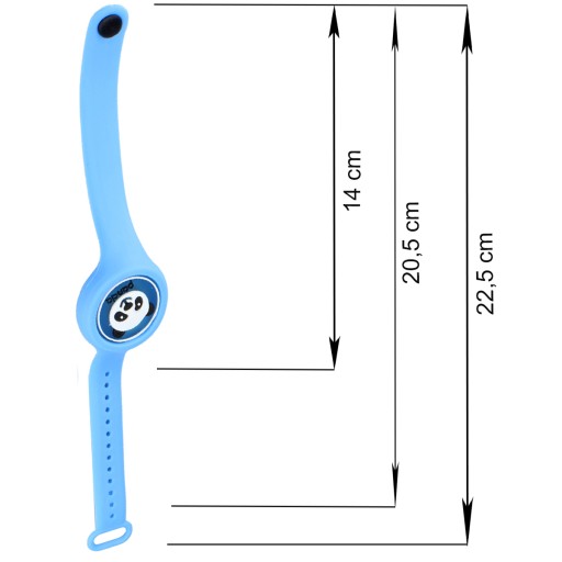 Zegarek pasuje zarówno na dziecięcą rączkę jak i na osobę dorosłą. Posiada regulację długości dzięki temu można go dopasować do każdej ręki