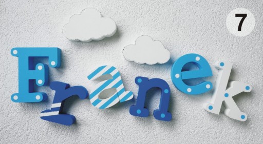 Wysokość największej literki to około 17cm reszta literek proporcjonalnie według wzoru. Literki malowane są ręcznie farbami akrylowymi, zdobione różnymi motywami co daje super efekt końcowy. Doskonale nadają się jako oryginalna i efektowna ozdoba każdego wnętrza jak i idealny prezent dla pociechy i rodziców.