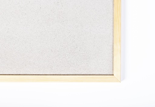 Rama tablicy korkowej wykonana z suchego drewna sosnowego, bez sęków, szlifowana czterostronnie, zaokrąglona w przedniej części, grubość min. 20x20 mm, daje to gwarancję stabilności nawet przy największych rozmiarach.