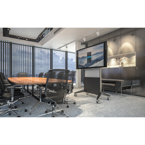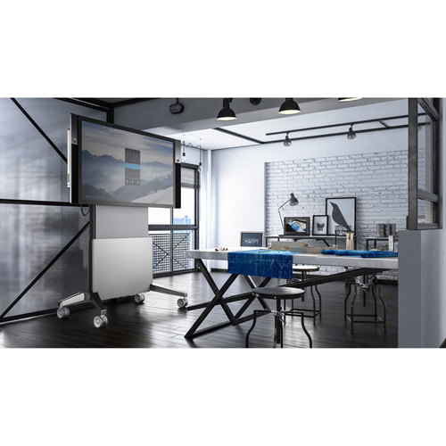 Ta mobilna podstawa bezproblemowo integruje się z monitorami do współpracy o przekątnej do 65 cali lub 80 kg z w pełni regulowanym sterowaniem silnikiem.