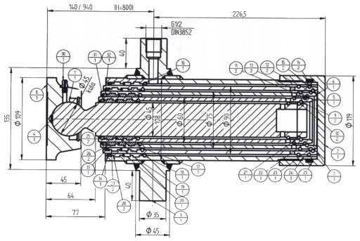 - Skok tłoka 800 mm,