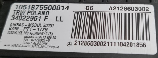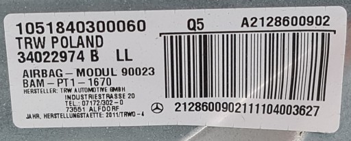 DESKA ROZDZIELCZA KONSOLA PODUSZKA AIRBAG KIEROWCY PASAŻERA KOLANOWA PASY A2128600902