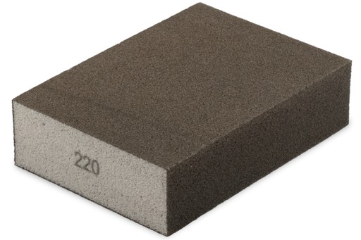 Kostka szlifierska o 4 powierzchniach roboczych różnej szerokości. Średnio twarda, elastyczna gąbka wykonana z pianki poliuretanowej, pokryta ziarnem ściernym z tlenku glinu. Klocek szlifierski nadaje się do uniwersalnej obróbki wgłębień, krawędzi, powierzchni płaskich i zakrzywionych. Bardzo dobre wyniki szlifowania uzyskuje się również przy dokładnym i pośrednim szlifowaniu defektów lakieru, zacieków lakieru, wtrąceń brudu, skórki pomarańczy, wtrąceń kurzu oraz przy szlifowaniu na sucho i na mokro. Różne granulacje dostępne jako warianty aukcji.