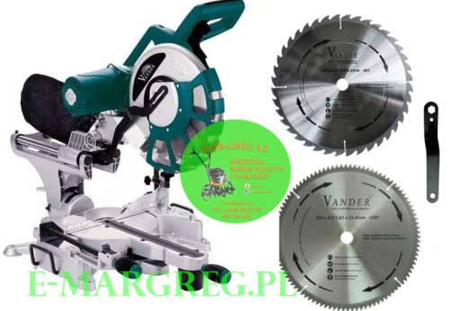 Ukośnica z podwójnym mechanizmem posuwu górnego do cięcia drewna oraz profili aluminiowych. Dzięki górnemu posuwowi unikamy zapchania się posuwnicy tak jak się dzieję to w maszynach z dolnym posuwem. Dodatkowy kolektor zbiera ścinki i wióry ciętego materiału. Funkcja lasera oraz precyzyjne ustawianie kąta cięcia do 1° pozwala na precyzyjne przycięcie obrabianego materiału. Tarcza 305mm oraz mocny 2000W silnik zapewniają wysoką wydajność cięcia nawet szerokich elementów. Przy chwycie, który jak cała maszyna, jest powlekany gumą, znajduje się włącznik oraz przycisk zwalniający blokadę osłony, dzięki czemu jedną dłoń operator ma wolny i może bardziej kontrolować cięty materiał.