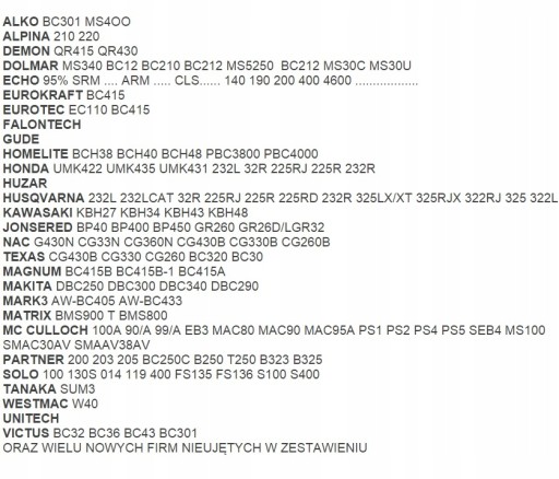 Na innych aukcjach posiadamy szeroki asortyment części do pił, kos, kosiarek i agregatów prądotwórczych.