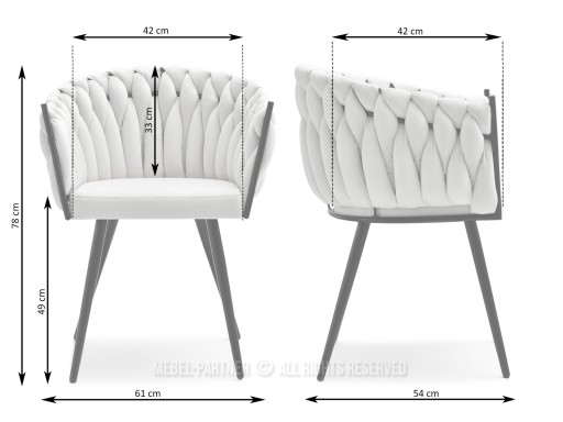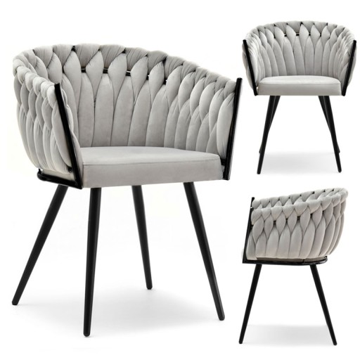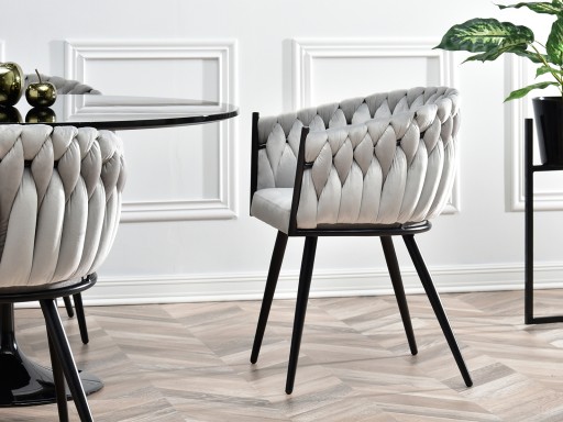 Nietuzinkowe i niezwykle eleganckie krzesło, które zachwyca spójnością formy i jakością wykonania. Bardzo wytrzymały stelaż malowany na czarny kolor, zdecydowanie podkreśla szarą barwę tapicerowanych elementów, które stabilnie wspiera oraz podtrzymuje. Dodatkowo przeplatanie, o jakie zostało urozmaicone oparcie, nadają produktowi wyjątkowo eleganckiej, a jednocześnie finezyjnej formy.