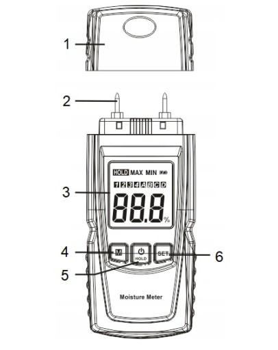 - Zakres pomiaru wilgotności: 0-6,8% / 6% / 6,6% / 12,2% (zależnie od grupy pomiarowej)