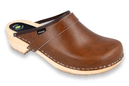 CLASSIC KLOGGA - solidne, klasyczne chodaki ortopedyczne z naturalnej skóry bydlęcej na spodach drewnianych, wzór szwedzki