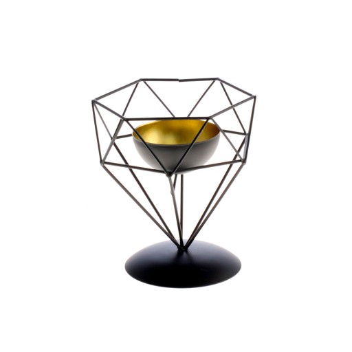 Geometryczny świecznik zabłyśnie we wnętrzu i doda mu aranżacyjnego blasku, a czarna konstrukcja będzie wyróżniała się spośród domowych ozdób.