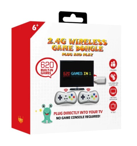 Konsola DONGLE GAME BOX | 620 wbudowanych gier Retro 8-bit | 2 bezprzewodowe PADY