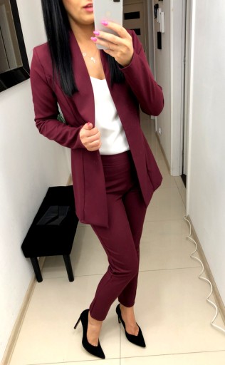 КОСТЮМ ЖЕНСКИЙ, куртка, брюки, бордовый, средний размер.