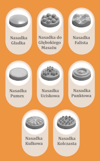 Urządzenie wyposażone jest w 8 końcówek do masażu.